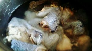 将乌鸡洗净,用水加料酒煮沸,捞出