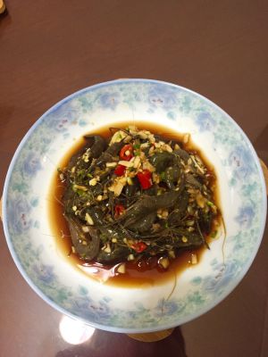 大蒜|、生姜、辣椒剁碎,我用的是老妈做的剁椒酱!另碗装入米醋,鲜酱油,芥末与剁碎的调料调和。可以适当放入糖,味精。(家里做菜从来不放味精,适当放入腐乳汤调鲜)