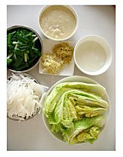 白菜洗净,切成四半,每个叶片都抹上盐,提前腌4-6小时,倒掉杀出的水,挤干水分,备用,白萝卜洗净,去皮,切成丝,大蒜去皮,用料理机打成泥,姜洗净,用料理机打成泥,小葱去皮洗净,切成寸段,梨洗净,去核,切成小块儿,用料理机打成泥,糯米粉加水,小火熬成粘稠的糊状,关火晾凉。