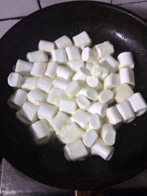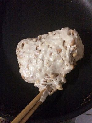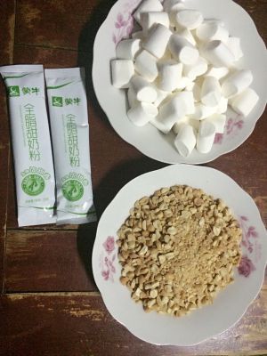 加入奶粉50g左右,加入花生,之间要一直不停的搅拌