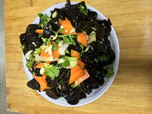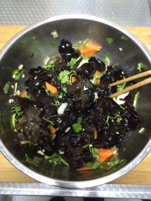 黑木耳温水泡发掐去蒂,滔洗干净。