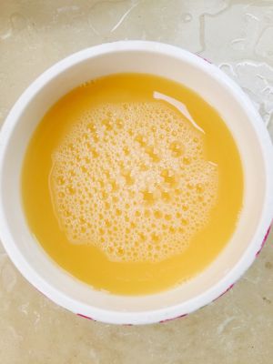 打散鸡蛋液,然后在鸡蛋液里加入1.5倍到2倍左右的温开水,用筷子向右不停的旋转,直至入图中这样。(是温开水喔)
