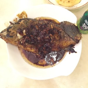 煎好鱼,用锅铲滑到锅一边,下葱姜蒜和豆瓣酱、大料炒香