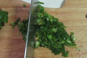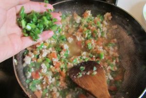 翻炒成熟后加入盐等调味料, 再加入适量小葱;