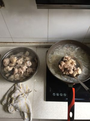 整鸡剁件,凉水下锅,焯焯熟撇出血沫