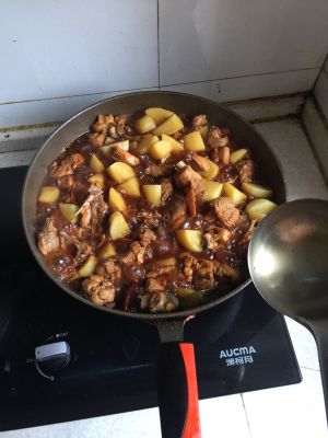 放生抽,老抽,上色,加热水烧开后,放入土豆