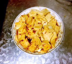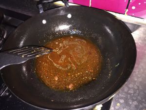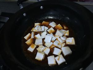 油烧热,加入花椒、黄豆酱,豆瓣酱翻炒。