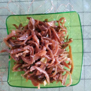这个是小姨给带的,用盐焗一下,晒干的萝卜干,大家可以自己晒一些,(萝卜切丝,撒盐,带萝卜出水了,蒸熟,晒干就可以了。)