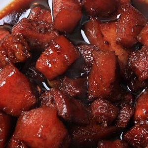 待冰糖完全炒化,加两汤匙老抽再次翻炒,使其酱油浸透肉块。