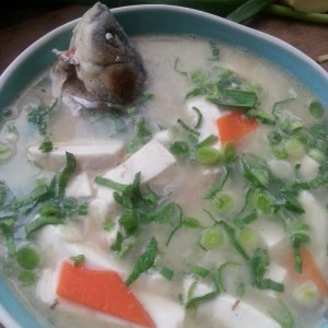 7 炖煮到汤像牛奶一样时 加盐 胡椒粉 豆腐块 红萝卜片(装饰)