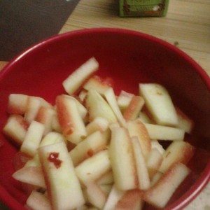 把削好的白色的部分切成小的长条,装到碗里