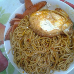 锅中放入油把番茄酱倒入锅中快速翻炒,然后下入沥过水的面条大火翻遍一分钟加盐在放入白胡椒即可出锅!