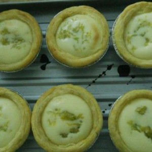 蛋挞皮提前解冻,解冻好放上南瓜蓉