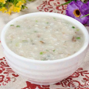 皮蛋切丁,再和猪肉一起放入锅中和大米一起煮,煮二十分钟后即可。(还可以再加入适量的葱花)。