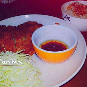 吃时配上圆白菜丝 酱汁 糙米饭 美味简单的一餐饭
