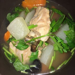 锅中放入清水,放入葱段,姜片。再次放入焯好的排骨并加少许白醋。大火炖煮30分钟,水开后,改小火炖30分钟至排骨软烂。将切好的胡萝卜,山药,白萝卜,香菇依次放入锅中炖煮至汤锅再次沸腾,改小火炖煮,炖煮约30分钟,放少许盐即可出锅。