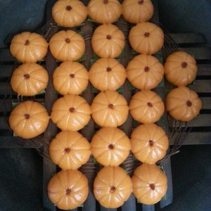 用牙签压出南瓜的样子,插入一粒枸杞