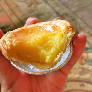 将蛋挞水倒入蛋挞皮中7分满,220度,25分钟左右。