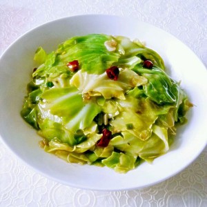 继续放入包包菜翻炒。转大火让包菜均匀的裹上一层油。