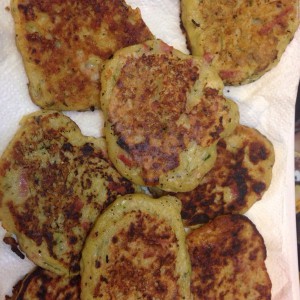 4.将所有土豆丝,黄瓜丝,火腿丝,鸡蛋,{面粉,淀粉}2:1,盐,胡椒粉,鸡粉放入盆里