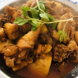 公鸡洗干净切块,热油下姜片炒香,下鸡块,继续翻炒