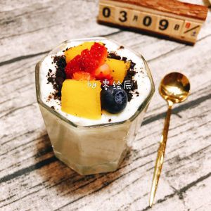 加上芒果草莓蓝莓装饰表面~美味的奥利奥芒果草莓双皮奶就做好啦!