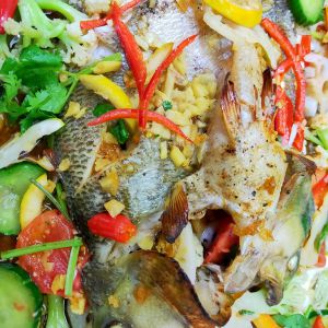 鲈鱼洗净用蚝油,柠檬汁,黑胡椒,姜丝腌制二十分钟