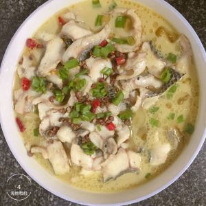 黑鱼洗净后,片成薄片。这里展现刀功哦,我只能做到这个程度啦。片好的鱼片加一点料酒、白胡椒、盐,抓匀后腌制15分钟。