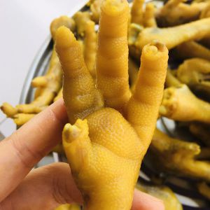 拿个大盘,下面铺一层薄盐,把晾干的鸡爪放在盐上面,排整齐