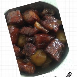 炖一会再放入盐,土豆,等土豆熟了,大火收汁,美味的红烧肉就做好了