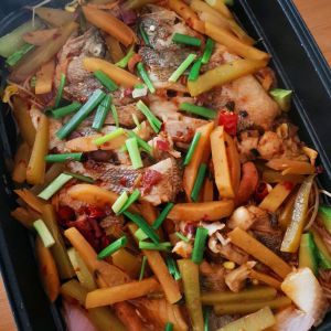 取鲈鱼一条洗好杀净,我是偷懒让盒马直接外送的,鱼有点小了,为什么用鲈鱼,因为鲈鱼没刺,吃起来方便!你们可以挑选一斤多的大一点的鲈鱼。