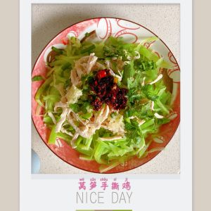 将鸡丝和莴笋摆盘,放入你喜欢的调料,最后淋上老干妈!