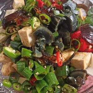 准备豆腐切块杭椒小葱切小块皮蛋切块
