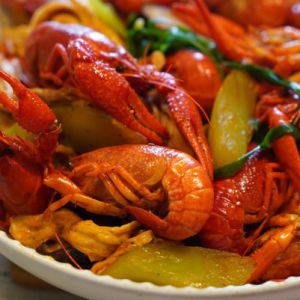 油锅下葱姜蒜 然后炒莴笋块,三分钟后倒入腐竹和龙虾,倒入一勺料酒和生抽,撒一块冰糖和盐,焖锅两分钟后起锅完成。好吃