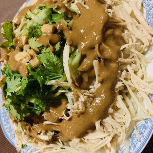 2.煮好的鸡胸洗净,过冷水,撕成丝备用
