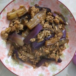蒸茄子的空隙葱姜蒜切沫,肉剁碎。
