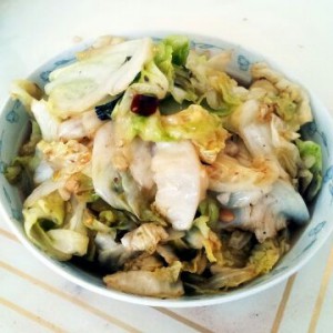 热油炒香葱花蒜沫 倒入包菜翻炒 撒入辣椒碎 加一些醋 糖 盐 鸡精 翻炒变软就可以关火了 撒入些蒜沫出锅