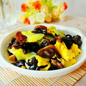 翻炒至黄瓜软榻,加入鸡蛋,放入盐