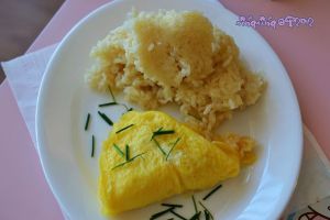 饭煎好摆盘出来,开始煎蛋。这个都会煎的吧,哈哈!