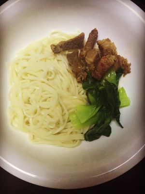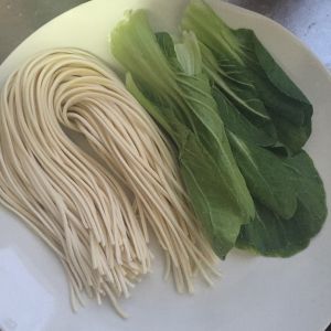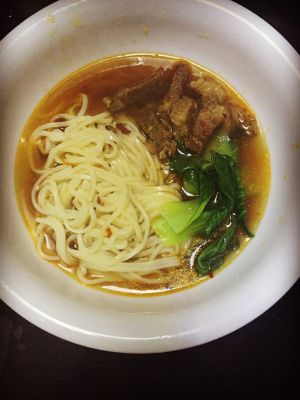 待牛肉煮烂时,另起锅煮面。烫青菜!