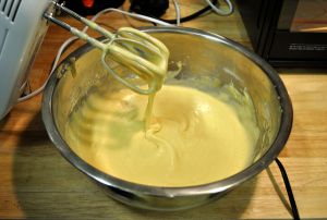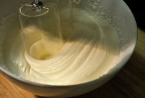 其实这个时候差不蛋糕也烤好了,边等奶油边等蛋糕冷却。:)