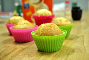 然后,同预热时的温度,放入三层烤架的最下层,烘焙时间为20分钟。看到一个个小松饼涨起来真得感觉很好哟