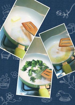 接著把備用的牛油倒入平底鍋裡(不需要再下別的油了,牛油已經代替了)將牛油完全融化,然後把備用的西蘭花倒進去炒大概三四分鐘就可以了~也可以適當放一點鹽,味道會更棒哦