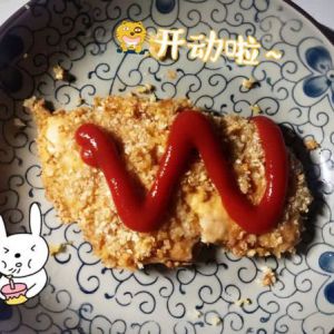 成品 放番茄酱或者椒盐根据自己的喜好啦 开动。出油锅的时候最好拿吸油纸吸一下哦。我是用了的。一整张的油…