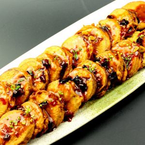锅内留少许底油下郫县豆瓣酱炒出红油下干辣椒蒜末爆香,烹生抽加一大勺汤,加盐鸡精糖醋调鱼香汁,糖醋比例2:1即可,淀粉勾芡淋在炸好的茄盒上撒葱花即可食用!