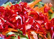 将切丝的食材放入器皿中,调入味汁搅拌均匀后撒香菜即可