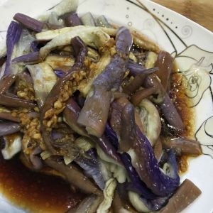 茄子洗净切段。蒸锅水开蒸10-15分钟