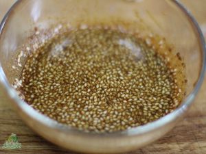加入熟芝麻、孜然、辣椒粉、椒盐,调成调味汁。