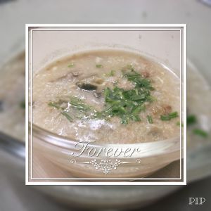 米差不多煮开就放进电饭煲,放入一小勺盐,搅一下调到煮粥,煮20-30分钟,关火,闷着,要吃的时候呈出来放上葱花。当然有耐心可以小火继续在熬,我是实在没耐心。