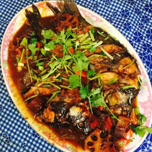 出锅 装盘放点香菜点缀 香喷喷的酱鲫鱼有木有啊!一碗白米饭 哇!鲜美的不要不要的啦!